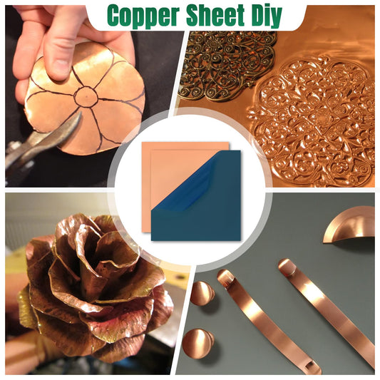 Uxney Copper Sheet Metal,4" x 4"-24 Gauge(0.5mm) Thickness,99.9% Pure Copper Plates for DIY, Jewelry, Electrical, Repair, Industrial(2 Pac)